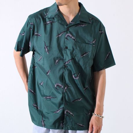 【FREDYMAC/フレディマック】動物モチーフ 総柄 半袖オープンカラーシャツ アロハシャツ