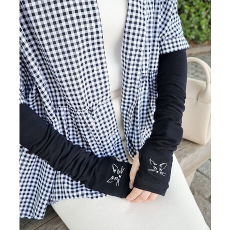ネコの刺繍で気分があがるデザイン。