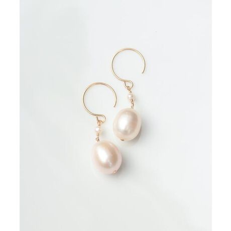ころんとしたフォルムが愛らしい淡水パールピアス。