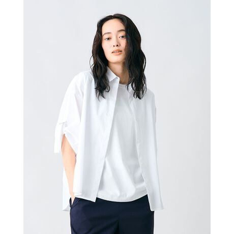 パンツやスカートにもぴったりのシンプルでラフ感のあるシャツです。