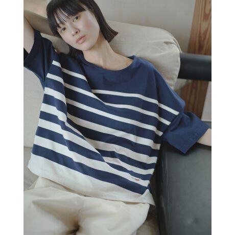 ジャンセンオリジナル先染めのパネルボーダーTシャツです。