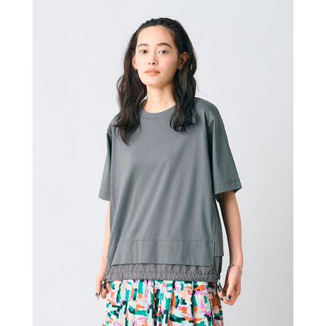 裾が布帛の素材で切替えられたデザインTシャツです。