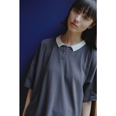 小さな衿が印象的なポロシャツ風のTシャツです。