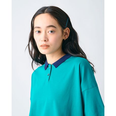 小さな衿が印象的なポロシャツ風のTシャツです。