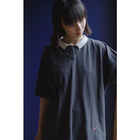 小さな衿が印象的なポロシャツ風のTシャツです。