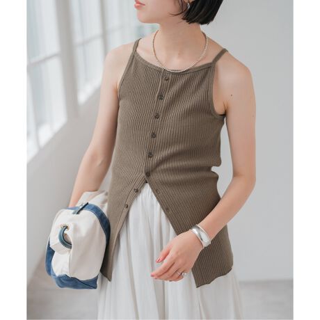 スラブ感の表情がキャッチーなランダムテレコを使用したキャミソール。