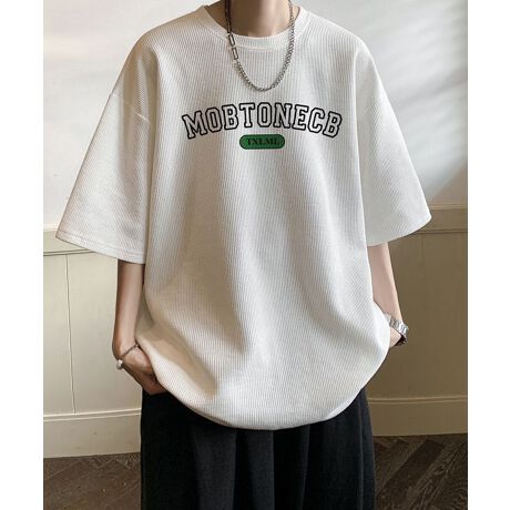 トレンドのワッフル素材 ロゴプリント オーバーサイズ クルーネック ビッグT】