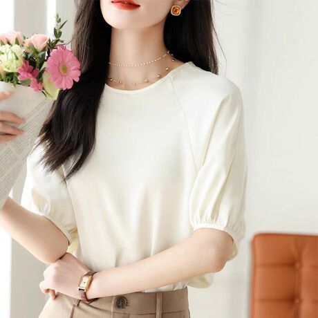 女性らしい美しさを演出するラウンドネックとゆったりとした袖感でエレガントながらもメリハリのある上品なブラウスが新登場!