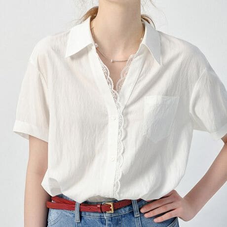 シンプルながらもエレガント!大人可愛いレース付きシャツブラウスが新登場!