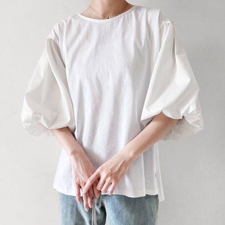 シンプルながらもエレガント!ボリュームスリーブで上品なコットン素材のカットソーが新登場!