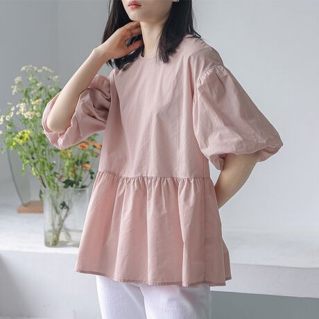 女性らしい美しさを演出するペプラム風なデザインとゆったりとしたボリュームスリーブでエレガントながらもメリハリのある上品なシャツブラウスが新登場!