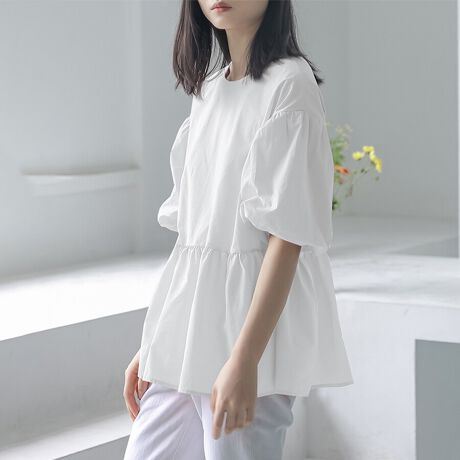 ペプラム風ボリュームスリーブブラウス