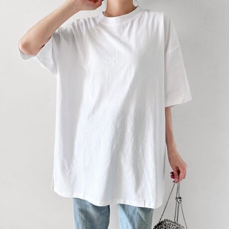 ゆとりのあるシルエットでややボリューム感がありながら、ラウンドネックでスッキリ綺麗めに仕上げました。