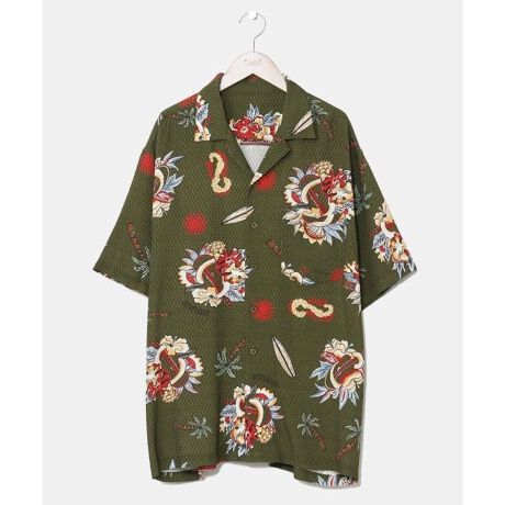[型番:4CH-5212-2025]風合いのよいレーヨンドビー生地で鮮やかなカラーリングのメンズアロハシャツ。ボタンを開けて羽織りとしても活躍します。