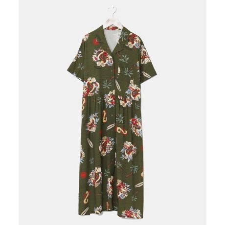 [型番:4CH-5211-2025]風合いのよいレーヨンドビー生地で鮮やかなカラーリングのシャツワンピース。ボタンを開けてカーディガンの様に羽織って着用することもでき、着回しがきくアイテムです。サイドポケット付き。