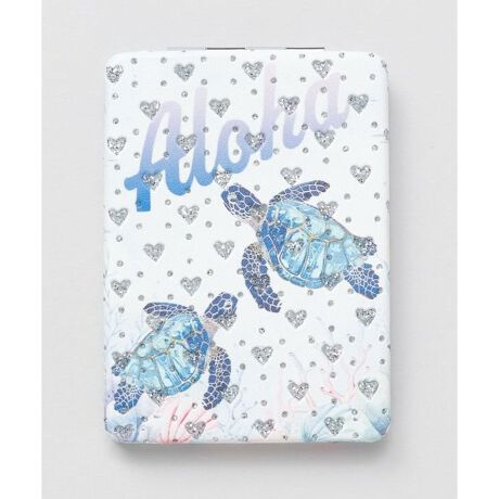 [型番:49RP5202-2025]キラキラとしたハートがちりばめられたコンパクトミラー。片方は拡大鏡になっています。ギフトにもおすすめです。