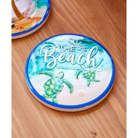 [型番:49RP5209-2025]ハワイの美しい海の風景が描かれた陶器のコースター。インテリアとして飾りたくなるほどの美しさ。空と海のグラデーションが目を惹くデザインです。