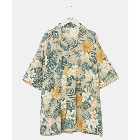 [型番:4IA-5234-2025]鮮やかなカラーリングのメンズアロハシャツ。大きめのハイビスカスやモンステラがポイント。ボタンを開けて羽織りとしても活躍します。