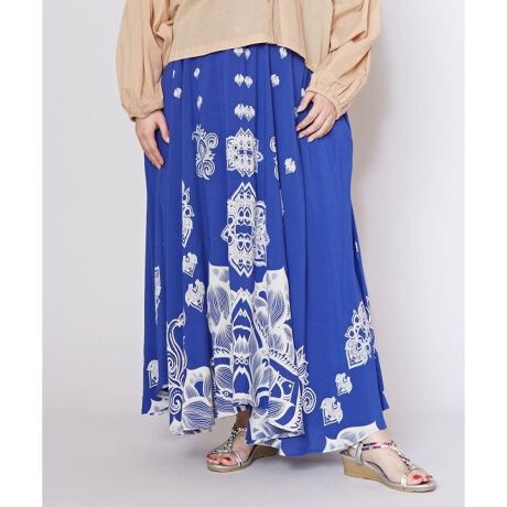 【Amina×VORRUK】タイのアーティストVORRUKとのコラボ。力強いロータスの絵を単色のプリントで落とし込んだ変形のスカート。柔らかくて涼しいレーヨン素材で着心地抜群。たっぷりしたドレープで動きのあるシルエットが出せる。普段のコーディネートにも合わせやすい大胆なアイテム。