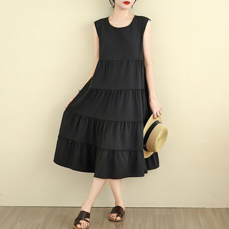 ギャザーフレアノースリーブワンピース