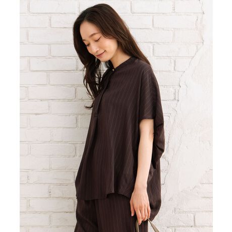 首元はすっきりとしたバンドカラーで顔まわりをシャープに見せつつ、程よい抜け感をプラスしてくれます。