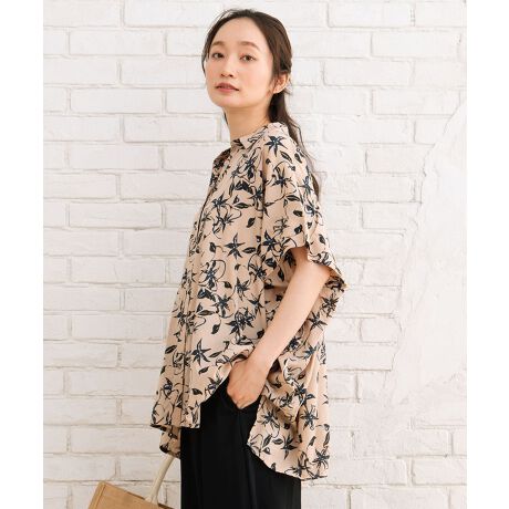 21号(6L〜) INDESIGN リーフプリントワイドシャツ