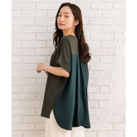 異素材の切り替えとタック使いが目を引く、大人のための上品ブラウスチュニック。