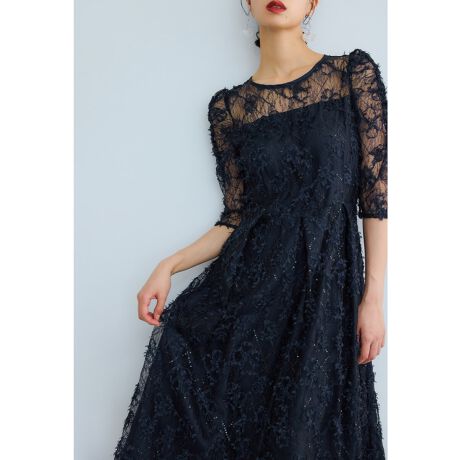 niana ニアナ 裏地との陰影が美しい立体感のあるフラワーレースのオケージョンドレス。