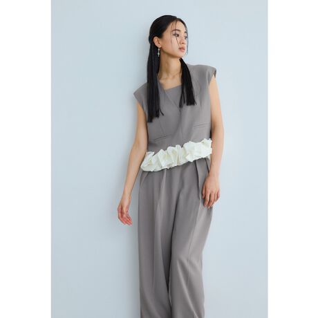 全体のバランスにこだわったモード感溢れるパンツドレスです。