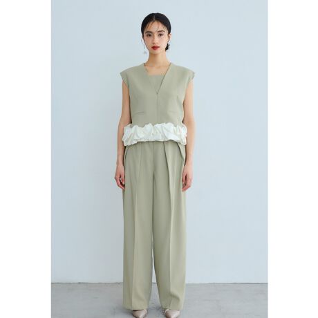 全体のバランスにこだわったモード感溢れるパンツドレスです。