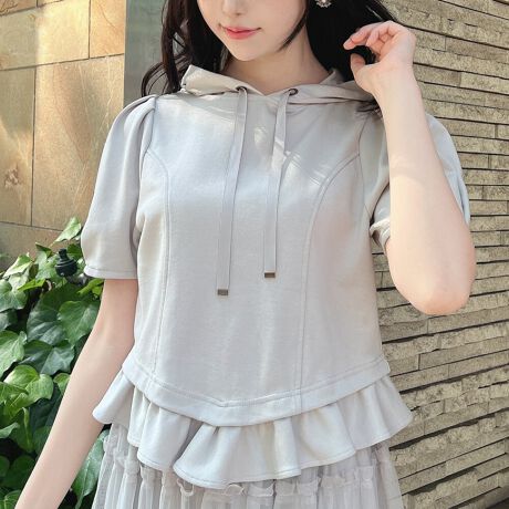 【洗える(マシンウォッシャブル)】コルセット 切替 半袖 パーカー