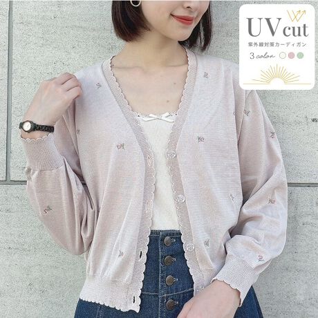 【UV加工/洗える(マシンウォッシャブル)】小花 総刺繍 UVカット ニットカーディガン