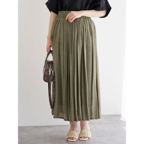 清涼感のあるスラブ生地で仕立てられたロングスカート