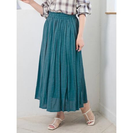 清涼感のあるスラブ生地で仕立てられたロングスカート