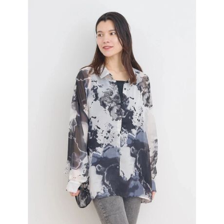 モードなぼかし柄のシアーシャツと着回しやすいタンクトップのSET
