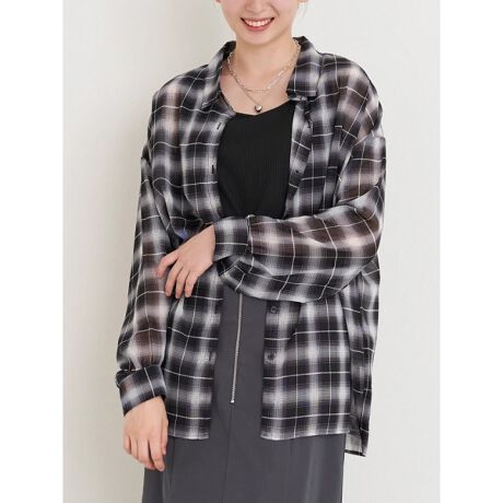涼し気な印象のチェック柄シアー素材×伸縮性のあるやわらかなリブ素材