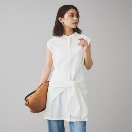 シャツを巻いたように見えるデザインがポイントのフレンチスリーブシャツです。