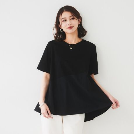 着心地のいいジャージ素材に程よいハリ感の布帛素材。