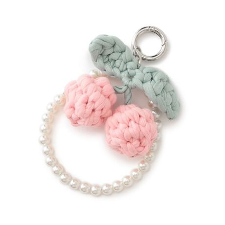 コットン素材を編んで作ったさくらんぼモチーフのバッグチャーム。