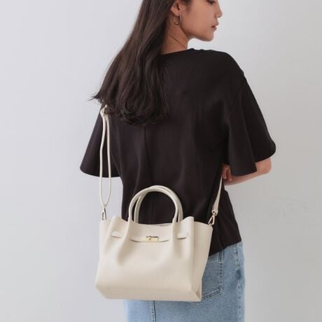 2WAY仕様がうれしい!本体前面ベルト風デザインが特徴のミドルサイズトートバッグ