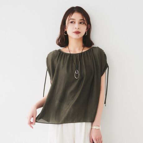 清涼感のある素材感が暑い季節にピッタリなドルマンシルエットのブラウス。