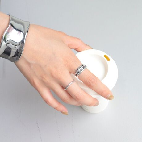 ・トレンド感のある刻印入りのリングと、緩くウェーブしたシンプルなリングの2本セット