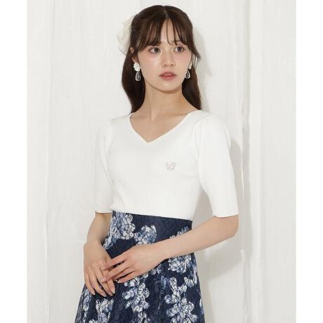 刺繍のワンポイントが上品に映える、着回し力抜群のハートネックトップス【Design】・ハートネックが女性らしいフェミニンプルオーバー。・胸元には上品な刺繍とパールをあしらい、シンプルながらも華やかさをプラス♪・肩に入れたタックが立体感のある美しいシルエットを演出します。・少し長めの袖丈で二の腕をカバーし、安心感のある着心地に◎・柔らかな生地感で肌なじみも良く、デイリー使いにぴったりの1枚!・キャミワンピースやジャンスカのインナーとしても相性抜群です。・1枚でもレイヤードでも着映える、万能フェミニントップスです♪【Fabric】・伸縮性のあるニット生地を使用。・ご自宅でお手入れが出来るのも嬉しいポイント♪・ホワイト、ホワイト×ネイビー、レッド、ブラック、ブラック×ホワイトの5色展開となります。【Care】手洗い可能