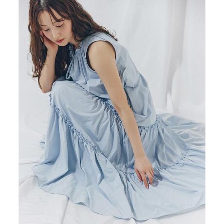 【ヨガインストラクターでインフルエンサーとしても大活躍の麻亜里さん×NBBコラボ企画】軽やかなタフタ素材を使用したワンピースです。裾はティアード切り替えと、ギャザーを寄せてボリュームを出しているので、動くたびに軽やかに広がるフレアシルエットを演出。襟ぐりのミニフリルから続く共紐は、フロントでリボン結びにするのがおすすめ。襟ぐりのリボンをほどいてから着脱いただけます。便利なスラッシュポケット付きです。<素材>軽やかで柔らかいタフタ素材を使用しています。<詳細>仕様・襟リボン裏地・なし透け感・なし / 光沢・なし / 伸縮性・なし生地の厚さ・普通※モデルの着用画像の場合、光の当たり具合により、実際の色味と異なって見えることがございます。色味は、商品単体の画像をご参照ください。