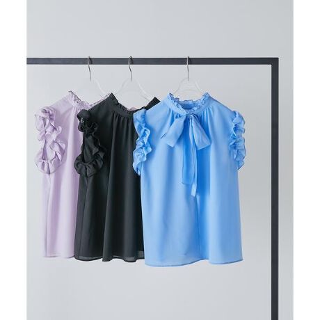 フリルスリーブバックリボンブラウス