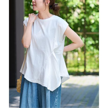Aラインに広がる女性らしいシルエットなので、ラフでカジュアルな印象になる天竺のコットン素材を使用し、デイリー使いしやすくしました。