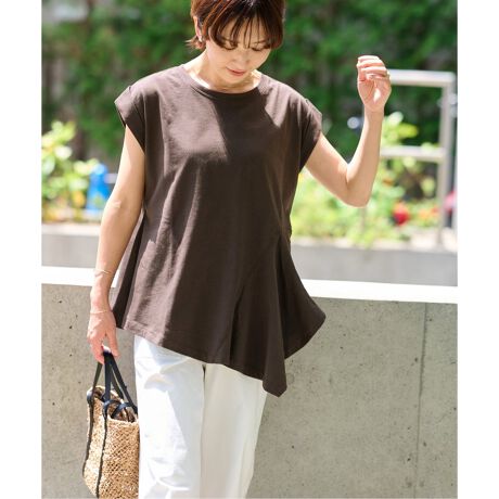 Aラインに広がる女性らしいシルエットなので、ラフでカジュアルな印象になる天竺のコットン素材を使用し、デイリー使いしやすくしました。
