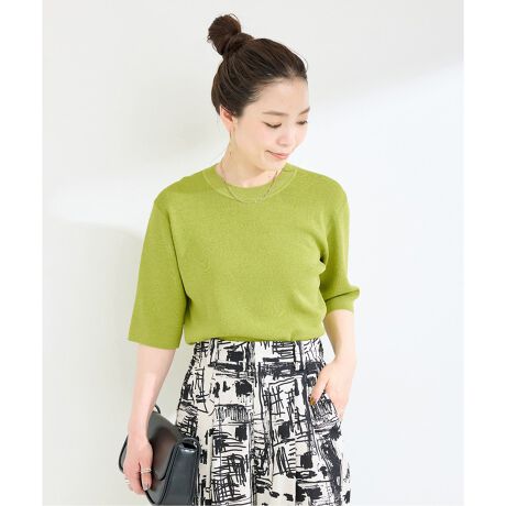 目がきれいに詰まっている総針編みでお作りしたサマーニットです。綺麗め・カジュアルダウンしても着れるベーシックな形になっていて幅広いスタイリングに合わせやすく、夏まで涼しく着ていただけます。