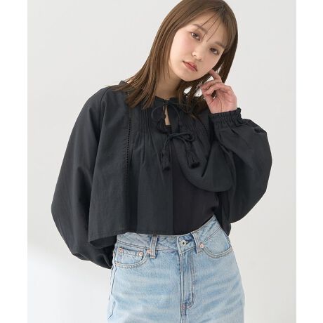インナータンクトップがセットになった嬉しいアイテム。タッセルリボンが目を惹くブラウスはピンタックやはしごレース、ギャザーフリルの袖口など細部までこだわりの詰まったデザインに仕上げました。タンクトップはどんなトップスにも合わせやすく着回し力抜群。それぞれ単品でも着回しがきき、スタイリングの幅も広がるおすすめのアイテムです。透け感[ややあり]
