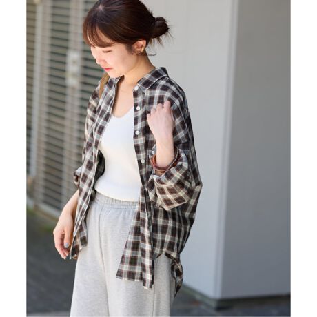 ◆秋のスタイリングに取り入れやすいチェック柄のシアーシャツ